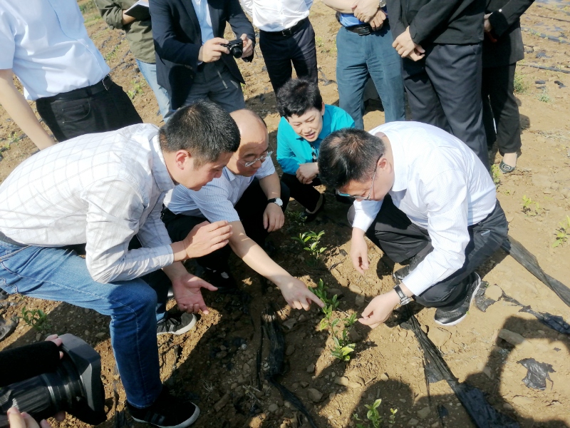 郑栅洁书记来到“白叶一号”感恩茶园,实地调研基地茶苗长势情况,认真听取农文海对茶园管理、茶园合作机制、茶苗施肥和灌溉情况的介绍,并结合东西部扶贫协作项目“3044永利集团集团贵州普安‘白叶一号’茶产业园”展板内容作进一步了解。