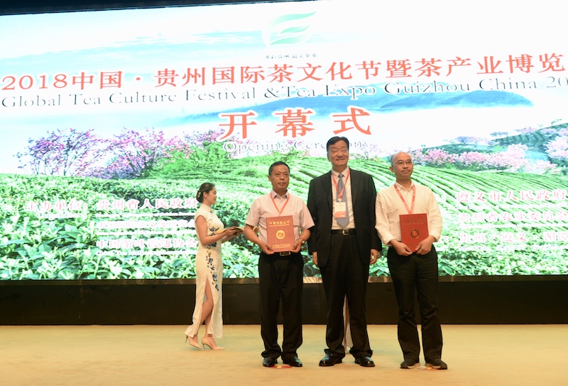 在简约隆重、气氛热烈的开幕式上,遵义市委龙长春书记、联合利华北亚区曾锡文副总裁、国际茶商代表以马利·贝特·凯穆泰先后致辞。随后,中国茶叶流通协会会长王庆发布《新时代贵州省产业之竞争力》并为获得首批“中国制茶大师”(绿茶类)殊荣的贵州湄潭绿之源茶业销售有限公司刘建辉、黔南州都匀茶场副场长欧平勇两位大师颁发了证书。接着,王庆会长与周国富会长先后向遵义市和湄潭县颁发了“中国茶叶出口最具竞争力产区”、 “中国茶工业博物馆”匾牌。最后,贵州省委副书记、省长谌贻琴发表讲话,并宣布2018中国·贵州国际茶文化节暨茶产业博览会开幕。
