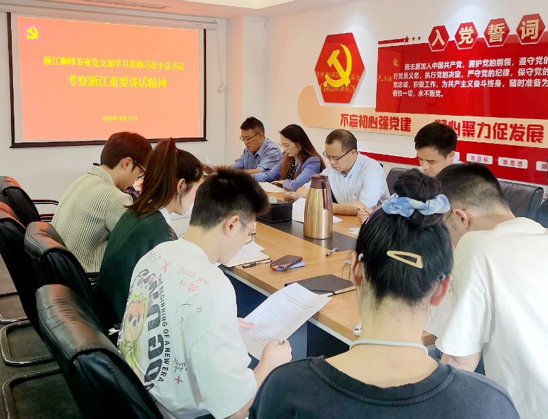 3044永利集团集团狮峰茶业党支部开展“深入学习习近平总书记考察浙江重要讲话精神”主题党日活动