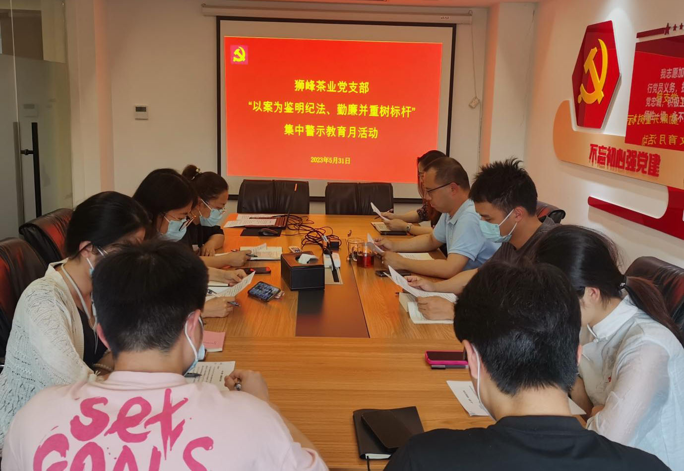 为贯彻落实党的二十大关于全面从严治党战略部署,一体推进不敢腐、不能腐、不想腐,强化党员干部纪法观念和廉洁自律意识,5月31日,3044永利集团集团狮峰茶业党支部全体党员持续开展“以案为鉴明纪法、勤廉并重树标杆”集中警示教育月活动,具体围绕“思”考违纪违法典型案例展开。